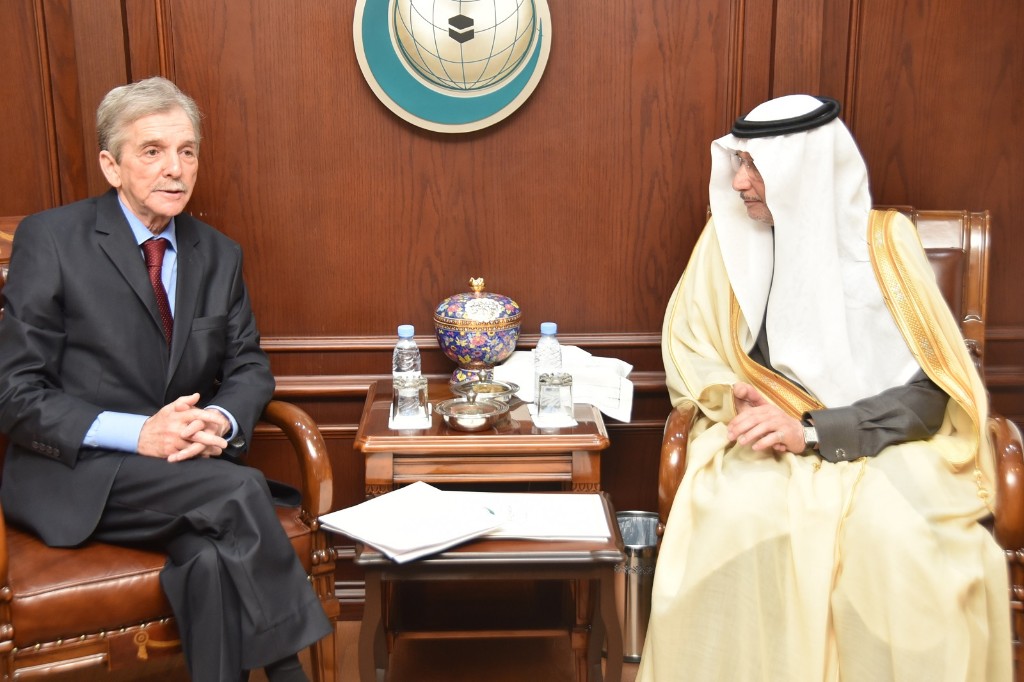 استقبل الأمين العام لمنظمة التعاون الإسلامي، معالي الدكتور يوسف بن أحمد العثيمين بمكتبه بمقر الأمانة العامة في 20 فبراير 2018، سعادة السيد أحمد عبد الصدوق، سفير الجمهورية الجزائرية الديمقراطية الشعبية في الرياض ومندوبها الدائم لدى منظمة التعاون الإسلامي.