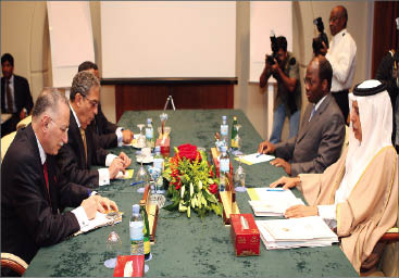 وقد خاطب الأمين العام الجلسة الافتتاحية للمفاوضات بكلمة تقدم في مستهلها بخالص الشكر والتقدير لصاحب السمو الشيخ حمد بن خليفة آل ثاني أمير دولة قطر للجهود الصادقة والمخلصة التي يبذلها لتحقيق السلم والأمن في الدول الأعضاء في المنظمة.