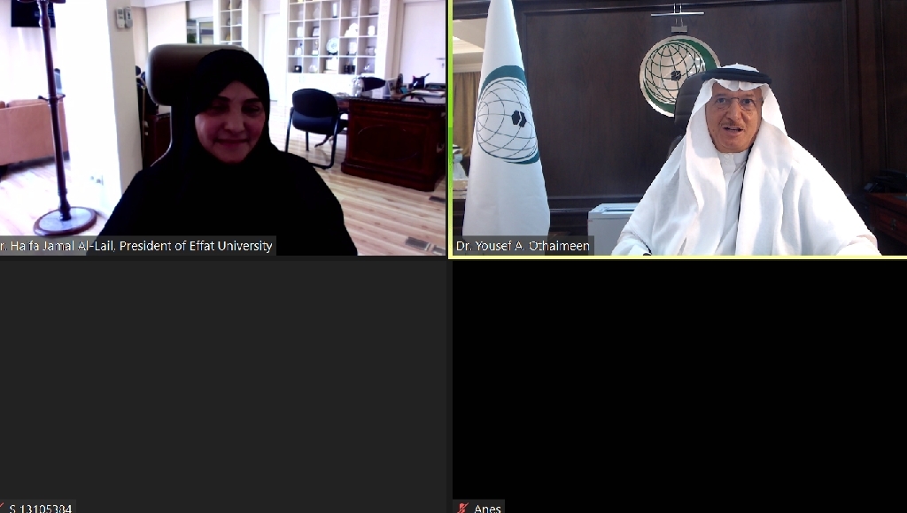 ألقى الأمين العام لمنظمة التعاون الإسلامي، الدكتور يوسف بن أحمد العثيمين، اليوم 28 أكتوبر 2020، محاضرة افتراضية لجامعة عفت في محافظة جدة تحت عنوان "تمكين المرأة في العالم الإسلامي.. المملكة العربية السعودية نموذجا".