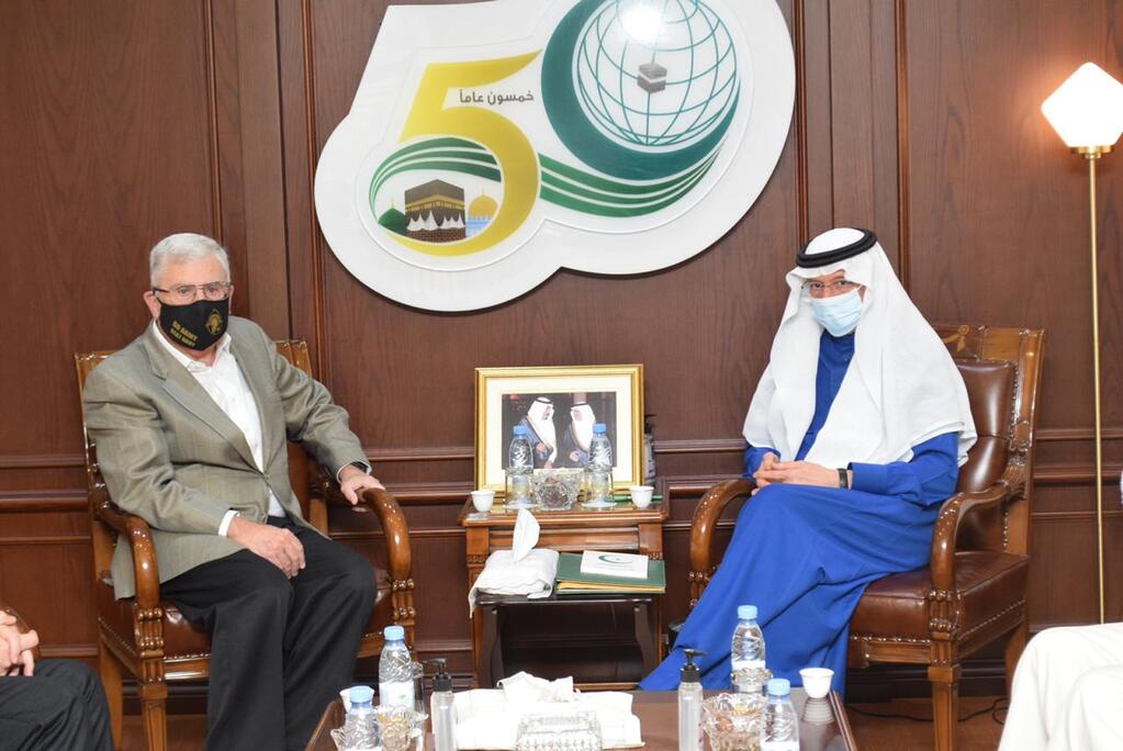 استقبل الأمين العام لمنظمة التعاون الإسلامي، الدكتور يوسف بن أحمد العثيمين في مكتبه بمحافظة جدة، اليوم 13 ديسمبر 2020، سفير الولايات المتحدة الأمريكية لدى المملكة العربية السعودية، السيد جون أبي زيد.