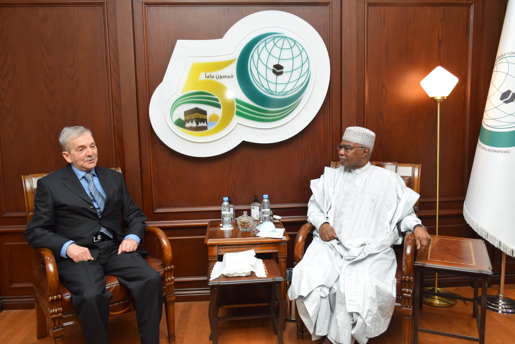 استقبل الأمين العام لمنظمة التعاون الإسلامي، معالي السيد حسين إبراهيم طه، اليوم 29 ديسمبر 2021، بمقر الأمانة العامة، سفير الجمهورية الجزائرية الديمقراطية الشعبية لدى المملكة العربية السعودية والمندوب الدائم لدى المنظمة، سعادة السفير أحمد عبد الصدوق.