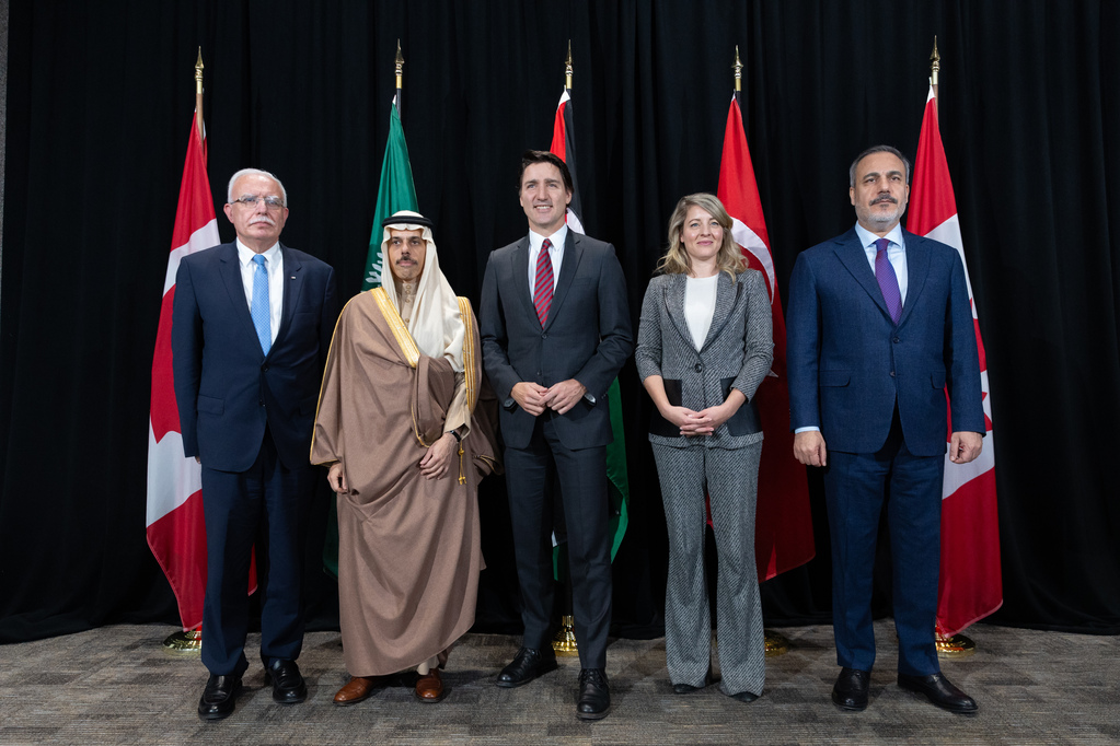التقى أعضاء اللجنة الوزارية المكلفة من القمة العربية الإسلامية المشتركة غير العادية، برئاسة صاحب السمو الأمير فيصل بن فرحان بن عبدالله وزير خارجية المملكة العربية السعودية، اليوم السبت 9 ديسمبر 2023م، في العاصمة الكندية أوتاوا، بدولة رئيس وزراء كندا السيد جاستن ترودو، وذلك بمشاركة معالي وزير الخارجية والمغتربين لدولة فلسطين رياض المالكي، ومعالي وزير خارجية الجمهورية التركية هاكان فيدان.