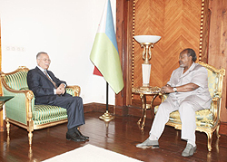 وخلال الزيارة، استُقبل الأمين العام في القصر الجمهوري من قبل رئيس الجمهورية وأجرى معه محادثات مطولة شملت العلاقات المميزة القائمة بين منظمة المؤتمر الإسلامي وجمهورية جيبوتي في جميع المجالات وحرص الجانبين على مزيد دعمها وتطويرها.