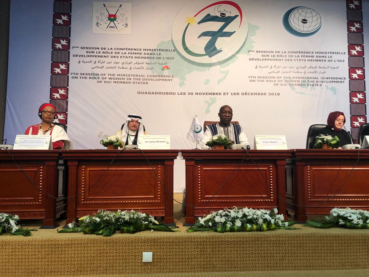 The 7th Ministerial Conference on the Role of Women in the Development of the Member States of the Organization of Islamic Cooperation (OIC), held in Ouagadougou, Burkina Faso, on 1 December 2018, started with an inaugural session marked by the address of the Prime Minister of Burkina Faso, HE Mr. Paul Kaba Thieba, the Secretary General of the OIC, Dr. Youssef Al Othaimeen, the outgoing Chair of the Sixth Conference, the Minister of Family Affairs of Turkey, and the incoming Chair of the Seventh Conference, Minister of Family Affairs of Burkina Faso.